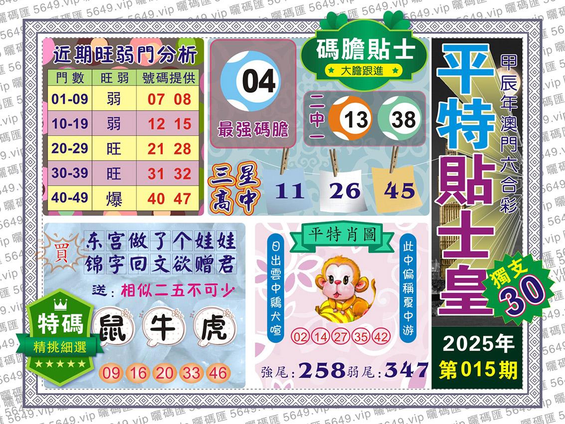 015期:今期出兔龙猪特,欲钱买好逸恶劳动物。